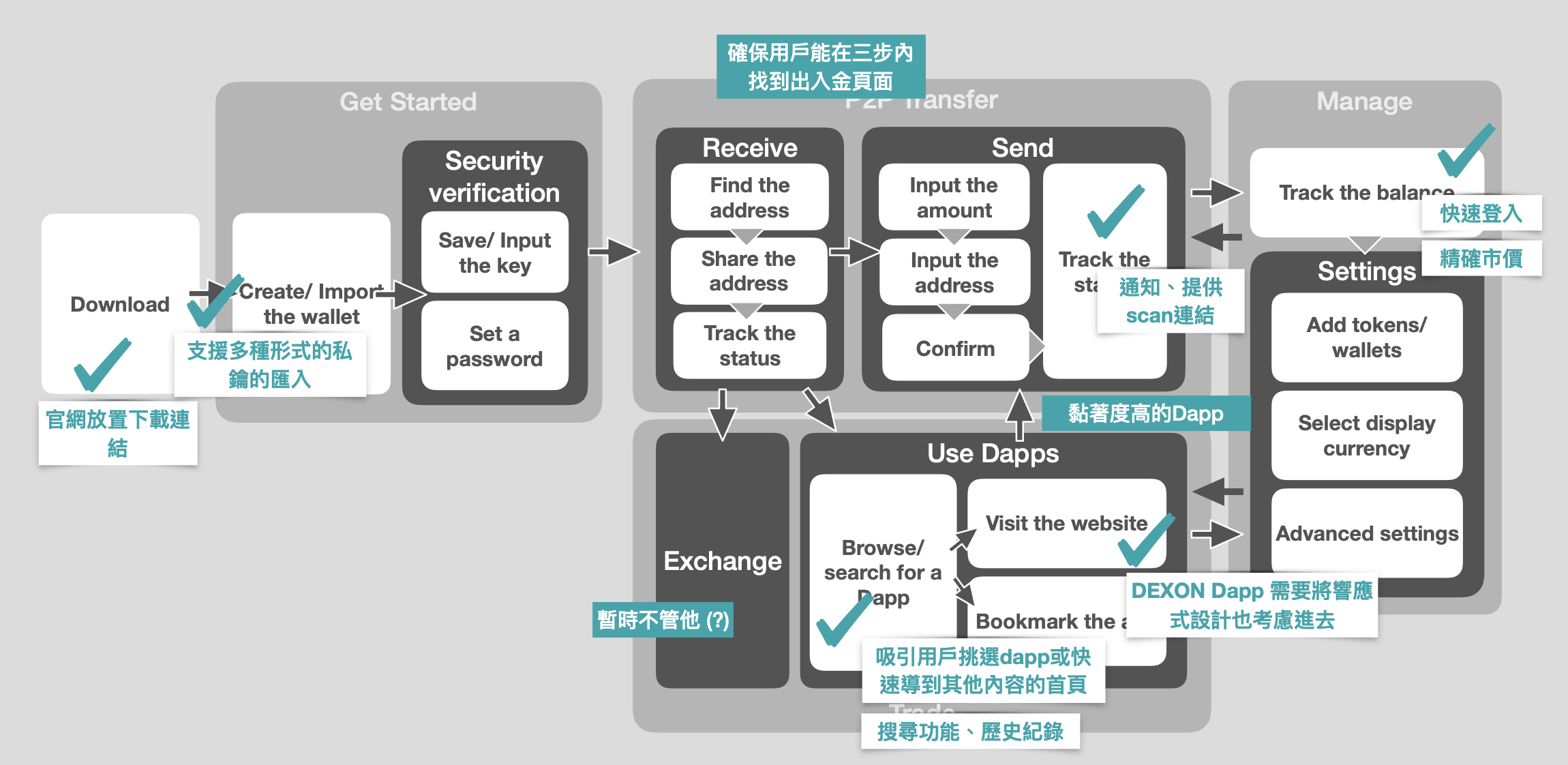 In designing the DEXON Wallet (decentralized wallet), Dexon Exchange (decentralized wallet) and Coblet (centralized wallet) ecosystem, we strategically define their roles and interactions within the cryptocurrency landscape, ensuring a seamless user journey across different levels of experience.