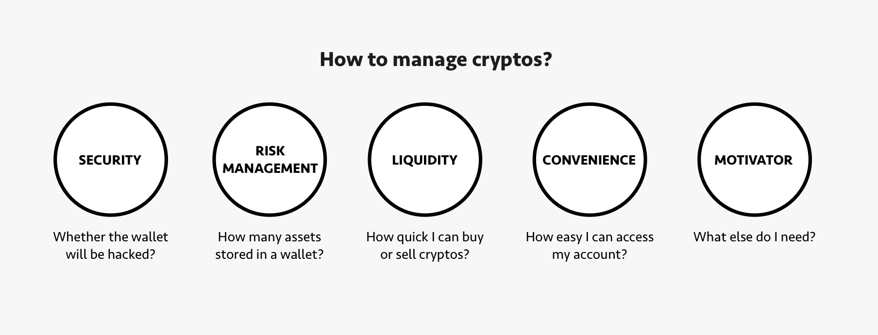 We conducted interviews with 10 internal and 8 external crypto wallet users to uncover their key values and requirements for a cryptocurrency wallet. The findings revealed three core values that shape how users perceive cryptocurrencies, their motivations for using them, and their preferred usage patterns.