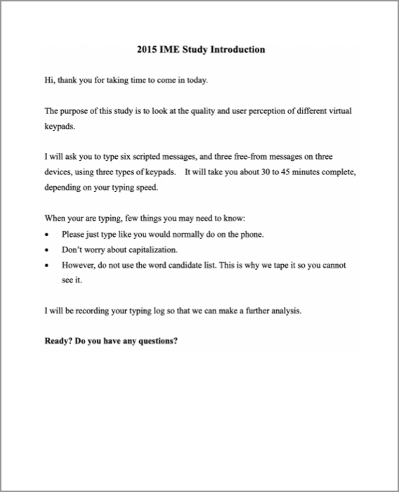 Typing Script Sample (Pre-defined, participants were asked to type in the experiment)